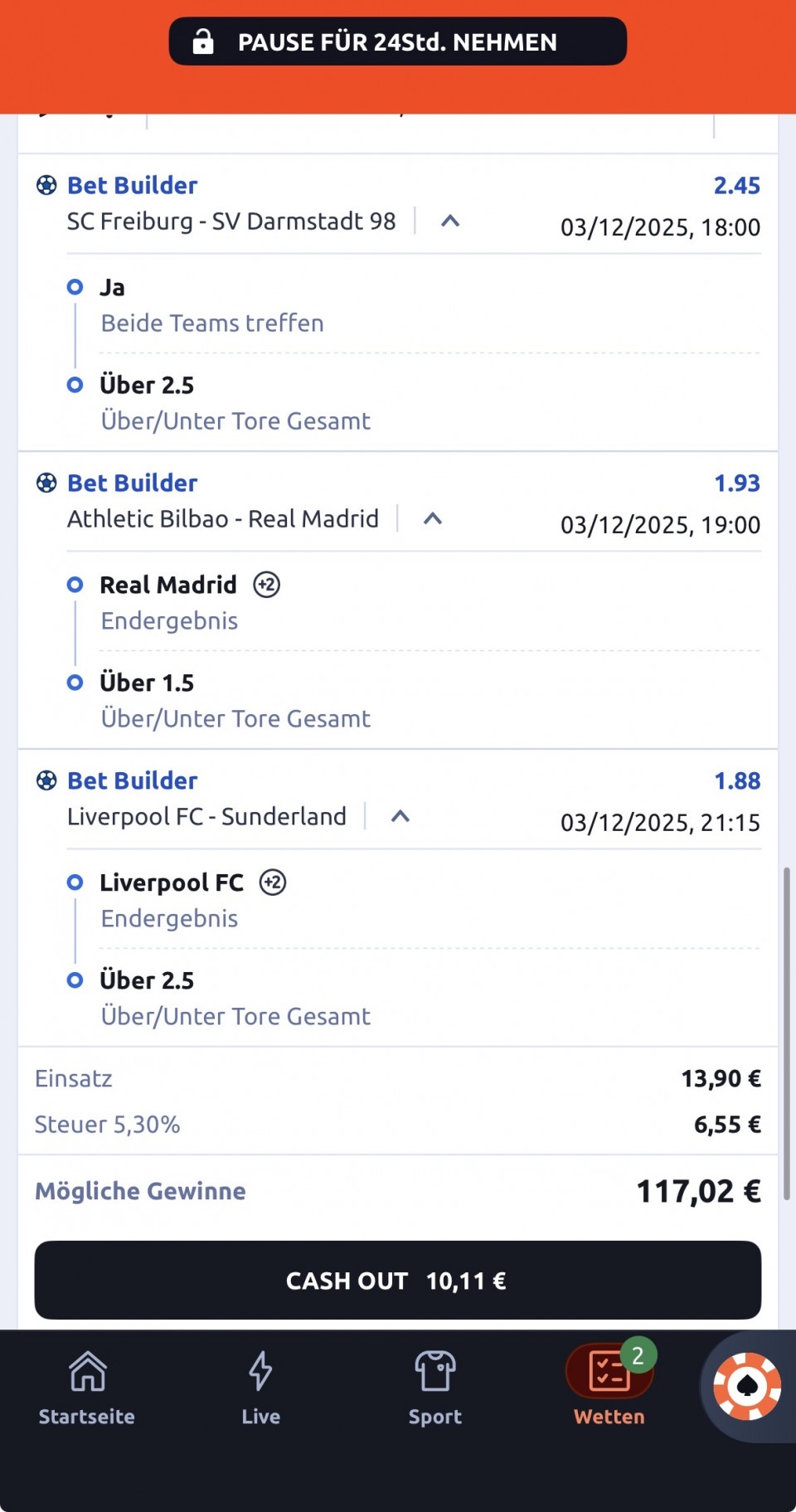 🇩🇪 18:00 Freiburg - Darmstadt 1 (1.70)/ 2-1 (28.00)