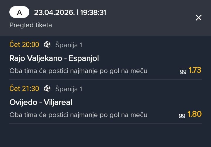 dublić "GG" @2.93 malo ruzičan ali jurimo dok nam ne pozeleni 🍏