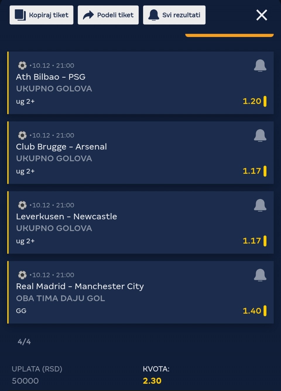 UTORAK LIGA SAMPIONA DUBL glavni tiket