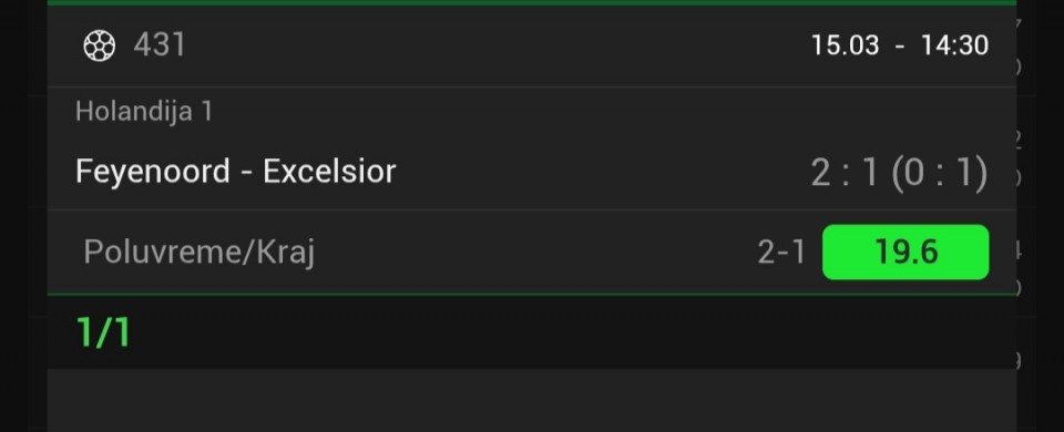 Predlog bio u komentaru. Italijani podbacili. Al dobro. Spasio Fejnord i doneo plus. Cekas se tripl koji je takodje u komentaru.