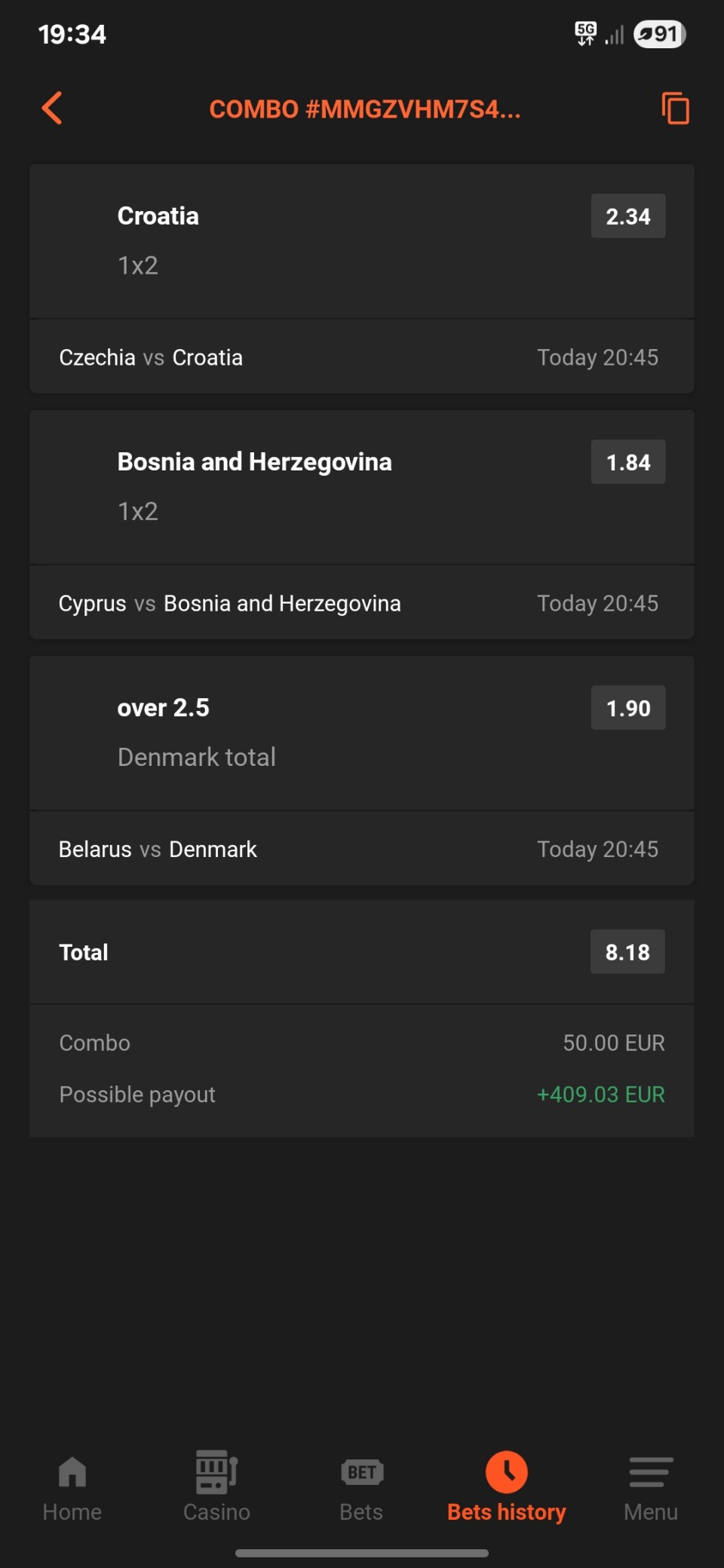 Danska puno jaća od Bjelorusije, osekujem dosta...Hrvatska bi sa ovom pobjedom osigurala svjetsko prvenstvo. Sigurniji bet je x2. Češka je dosta jak domaćin ali Hrvatska je dosta jača reprezentacija.