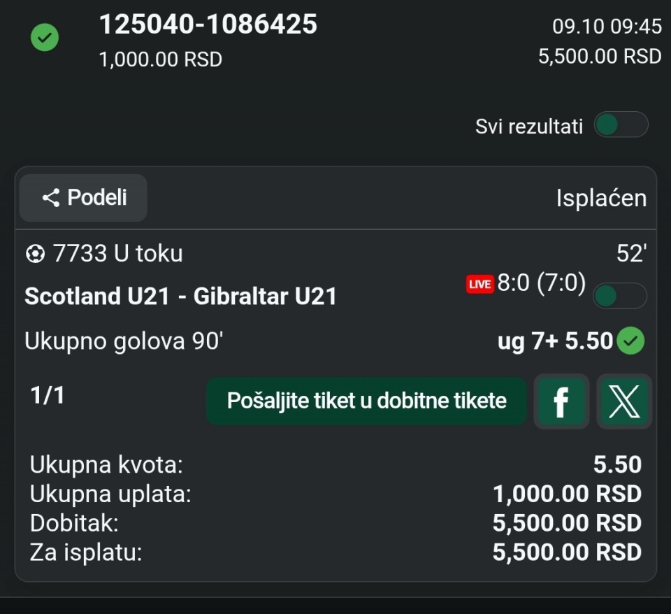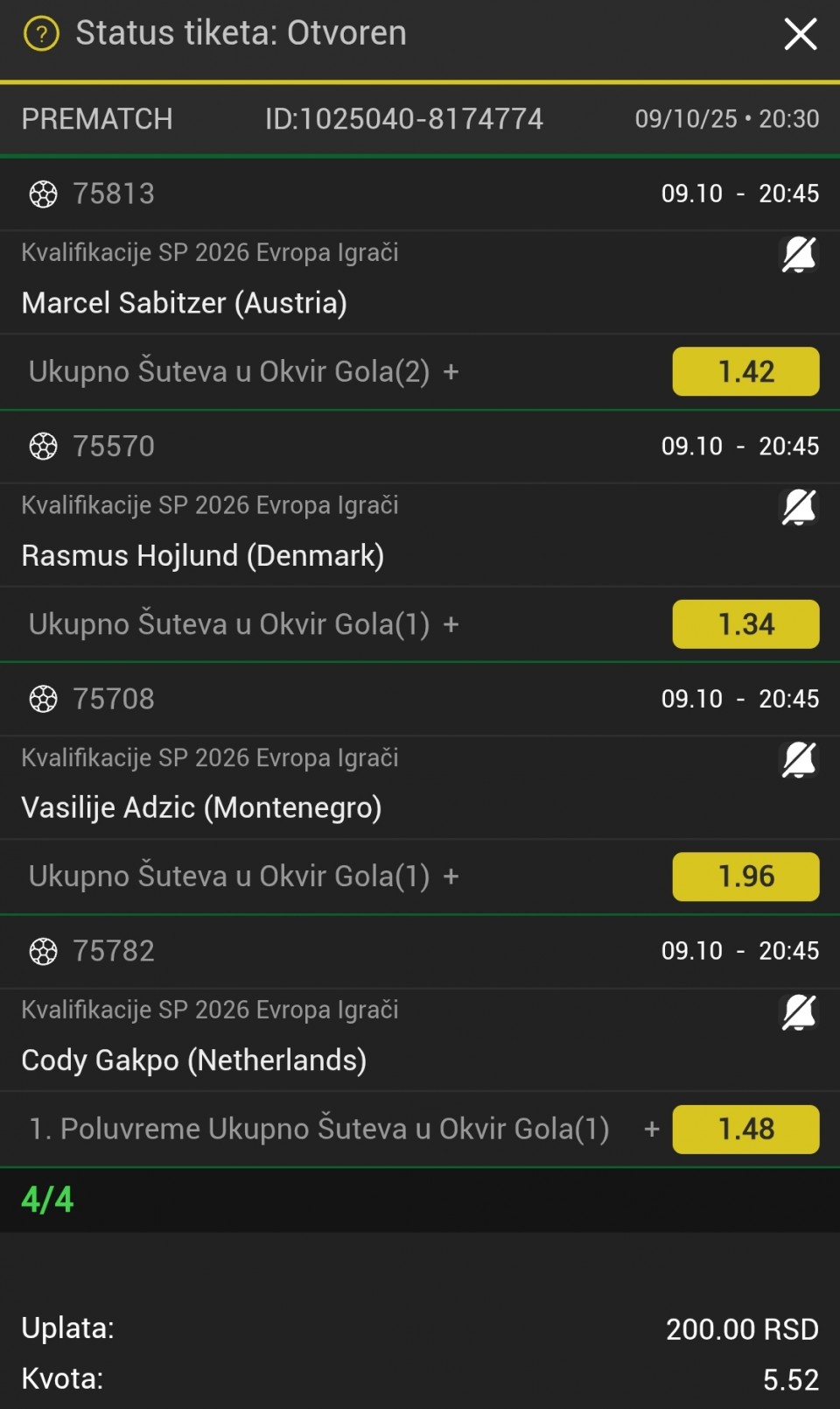 (07.10.)...još (3) wina pa isplata, e što nije 2.70 kvota skinuta na četvrtom koraku 😄 šalim se