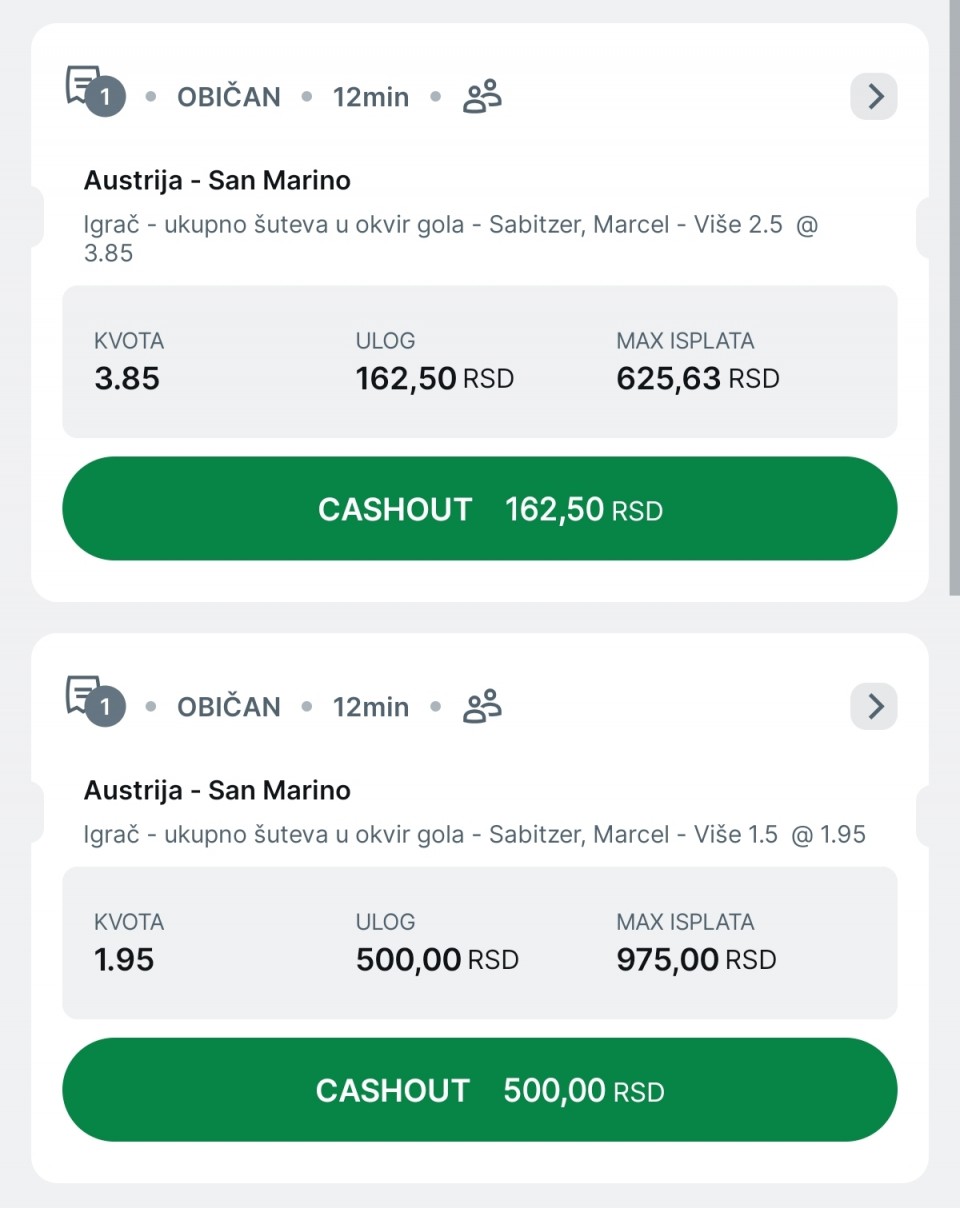 ...Sa termina u 18h pao dubl, ali prošao singl Leo Walta 1.5+ šuteva u okvir gola (5.65) ✅