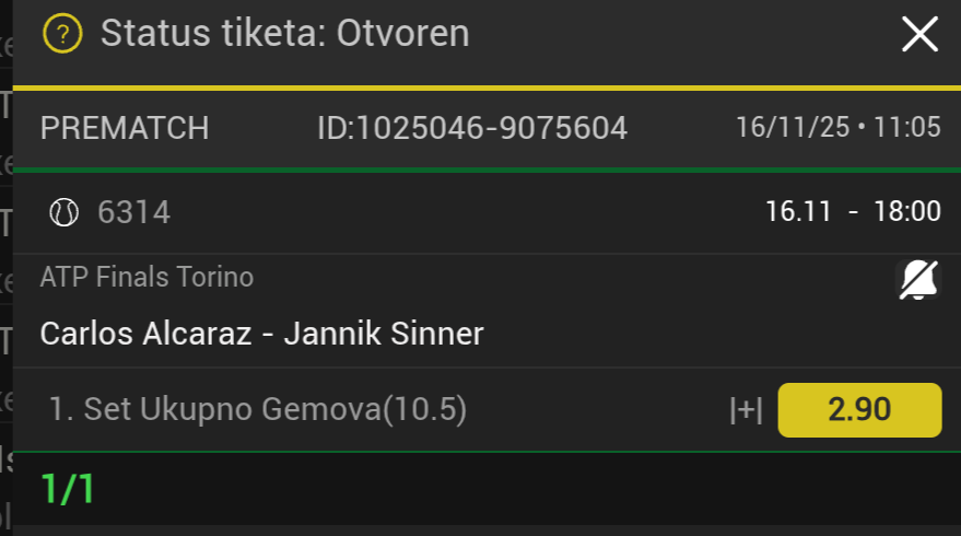 tip: over 2.5 (74 minut trenutni rezultat 1:1)