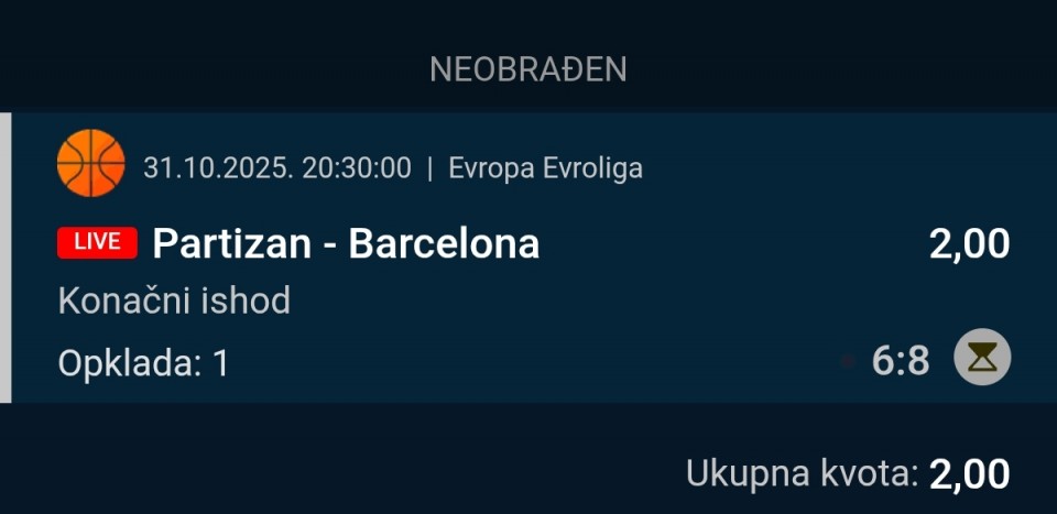 tip: over 2.5 (69 minut trenutni rezultat 2:0)...LIVE