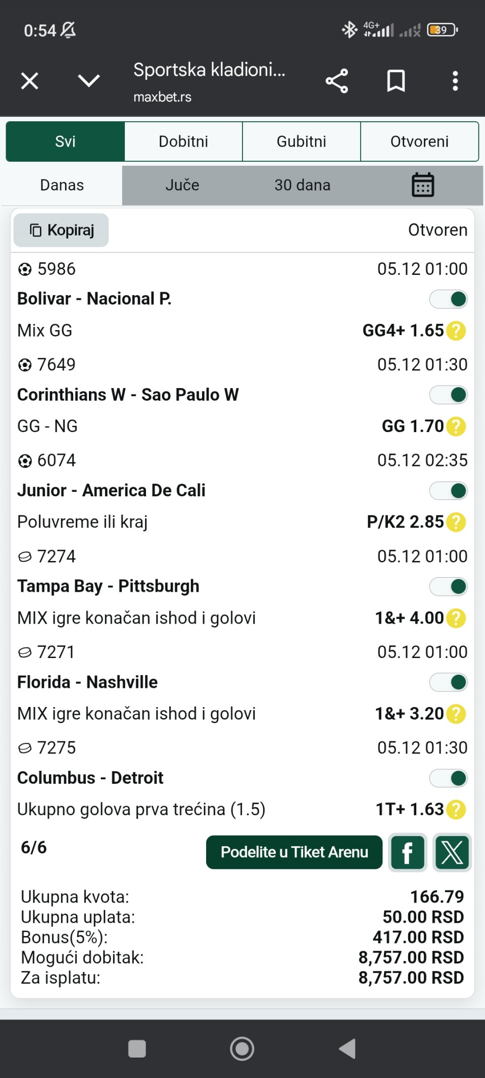 statistiku za predloge ne vodim, biće u komentaru win ✅ pad ❌