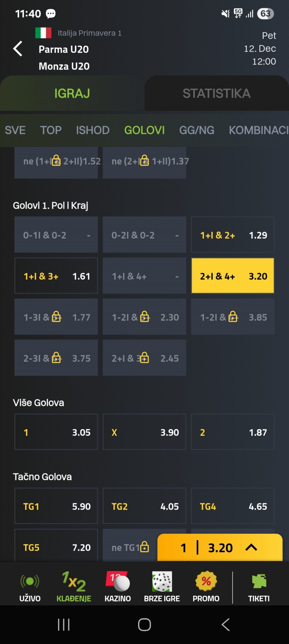 CC Napoli- Olympic Roma 25,5 ispod koef 1,85 10-7F.T
