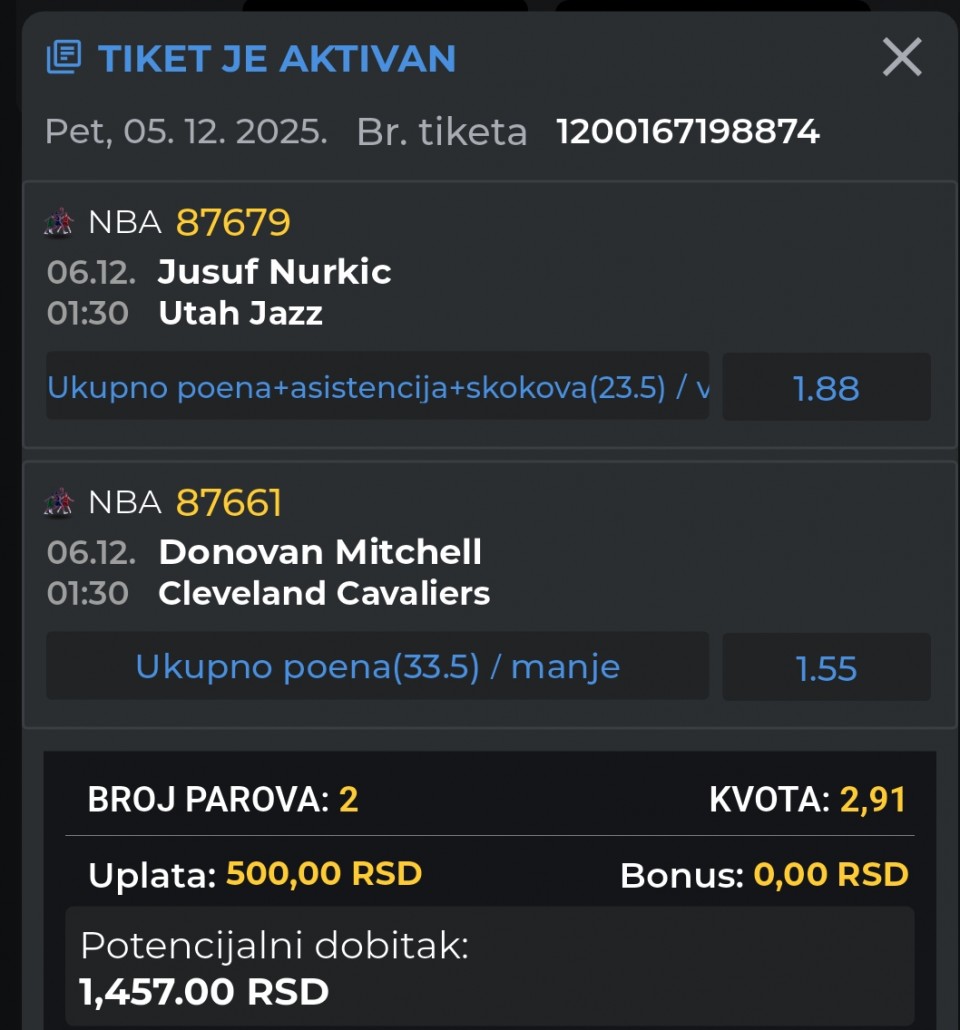 01 Tiket: 1.96 ✅ 1. korak ✔️