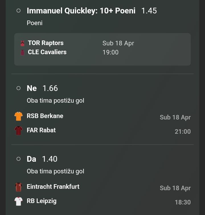 Ja nisam našao gde da uplatim, usrane strane kladionice, nigde nema u ponudi. Na domaćima ko za inat ni dinara.