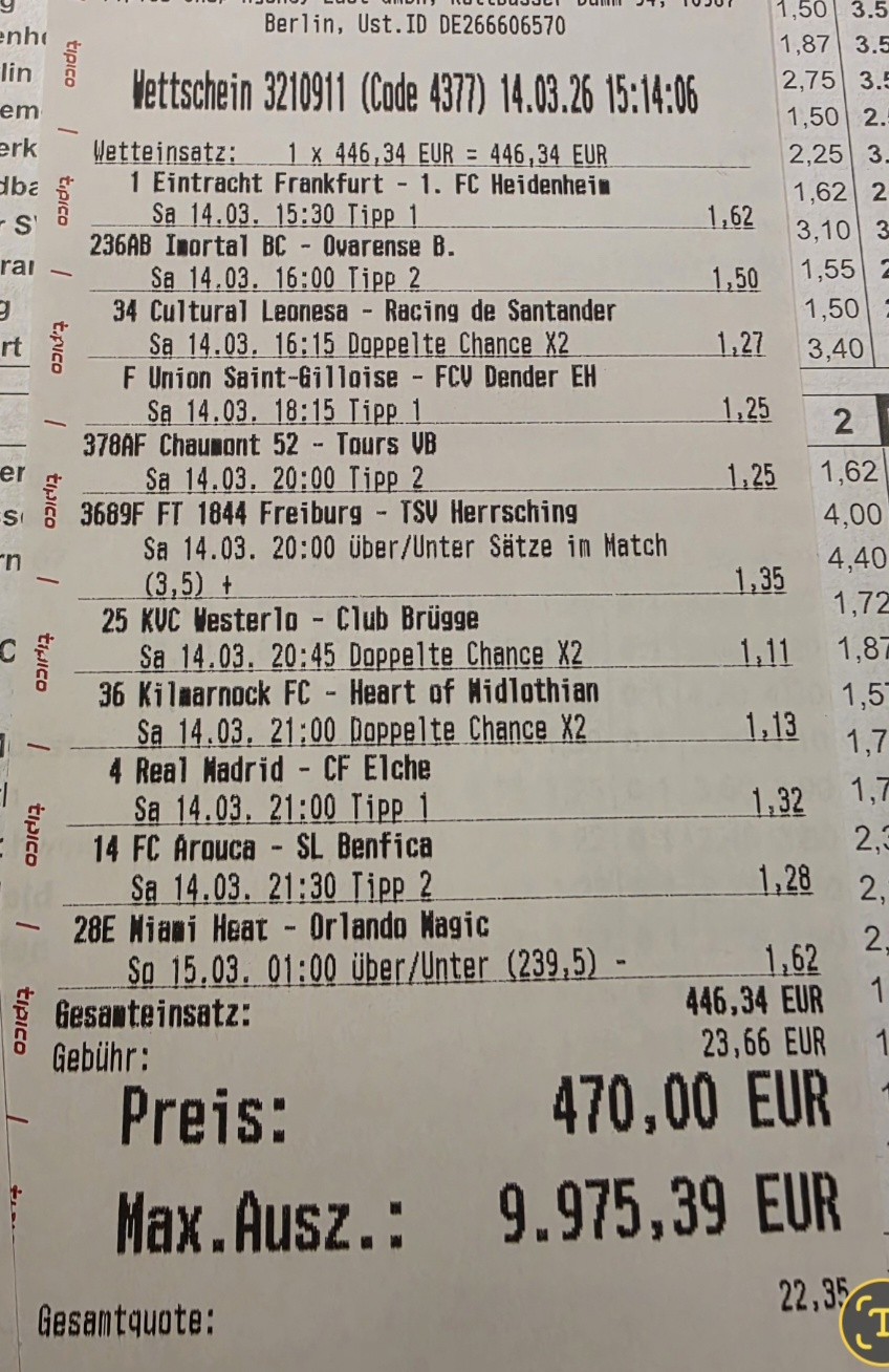 2 | 15:30 | Eintracht Frankfurt - Heidenheim | Domaćin preko 1.5 | 1.47