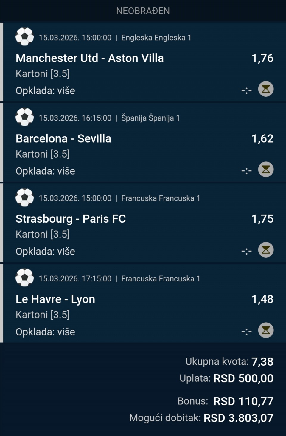 Ulog. 134,00 din...Barcelona-Sevilja 1 (1,3)