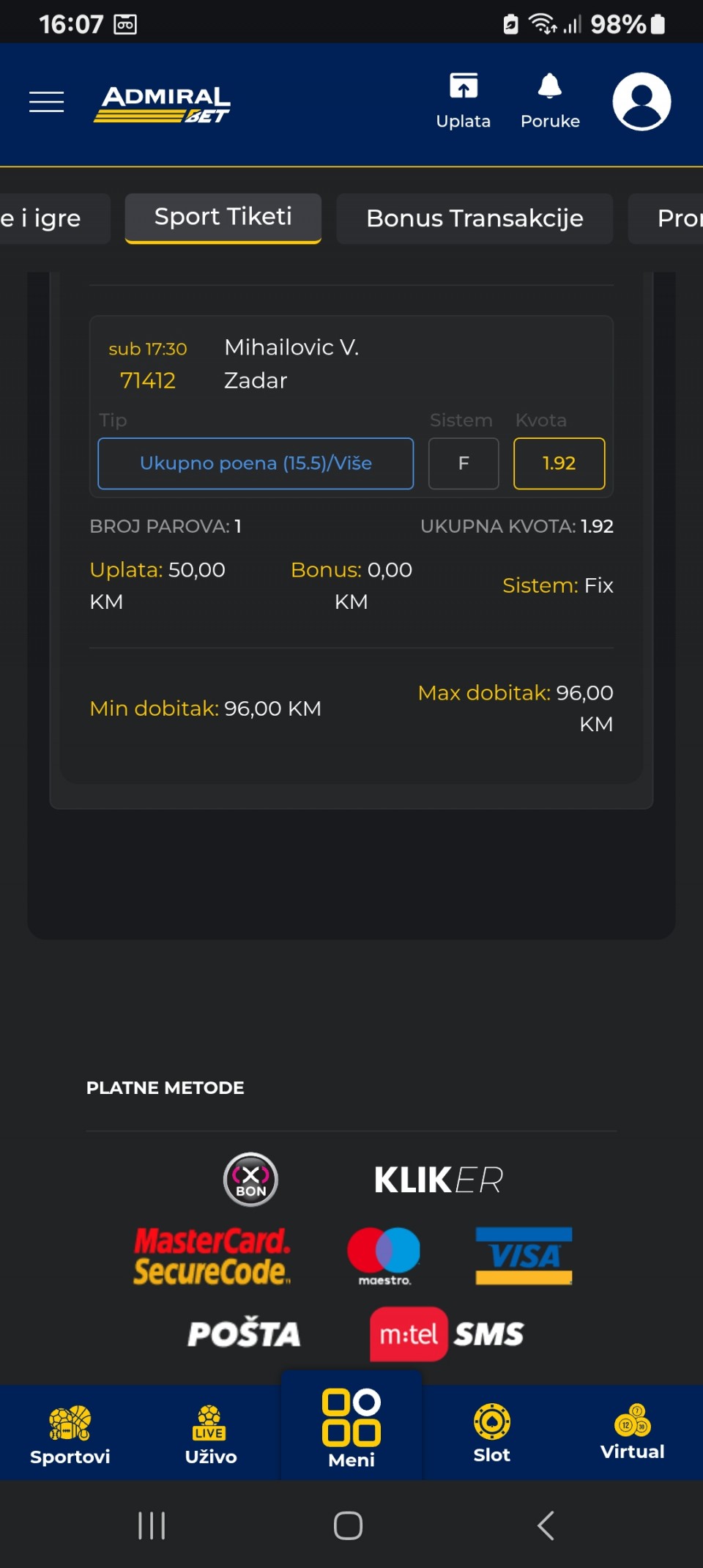 Čukarički-Partizan 18:00 1/2 ili 2/1 ( kvote 25,00 i 50,00)