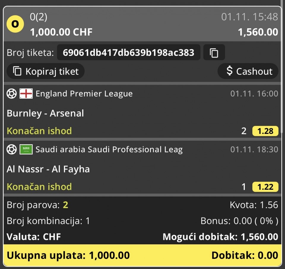 Nottingham-Man Utd 16:00 1/2 ili 2/1 ( kvote 23,00 i 29,00)