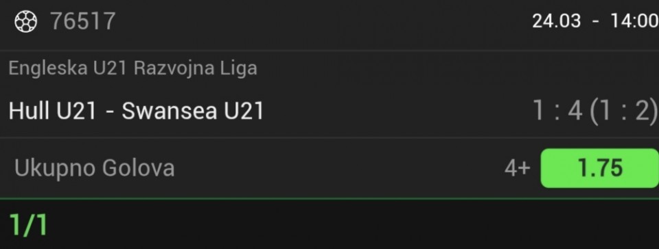 tip: over 3.5 (77 minut trenutni rezultat 2:1)
