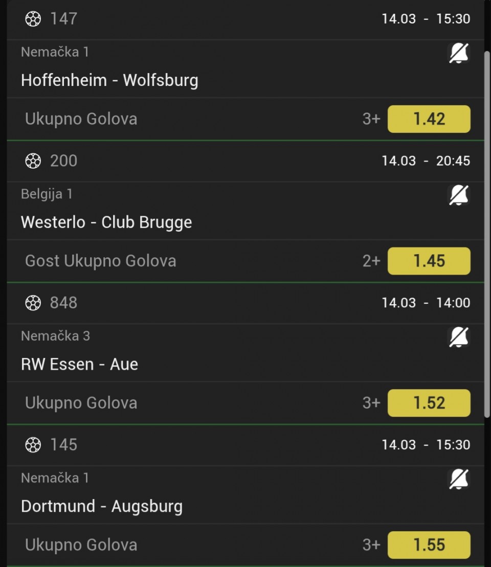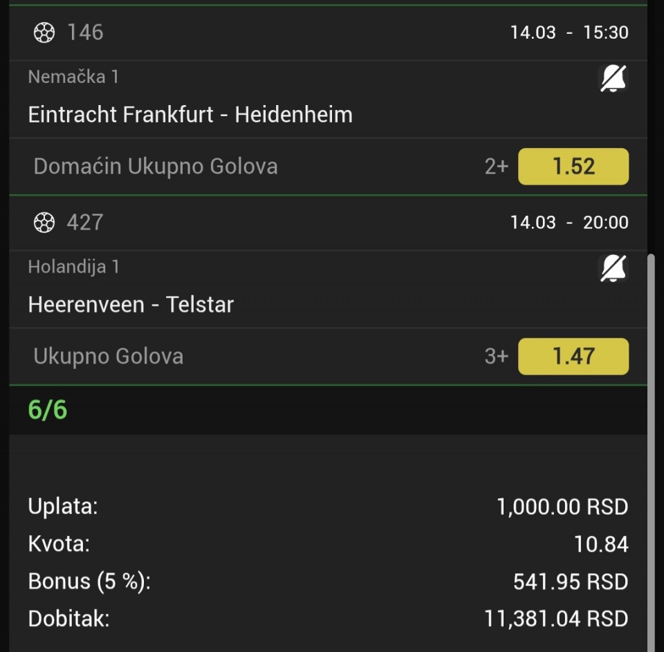 2 | 15:30 | Eintracht Frankfurt - Heidenheim | Domaćin preko 1.5 | 1.47