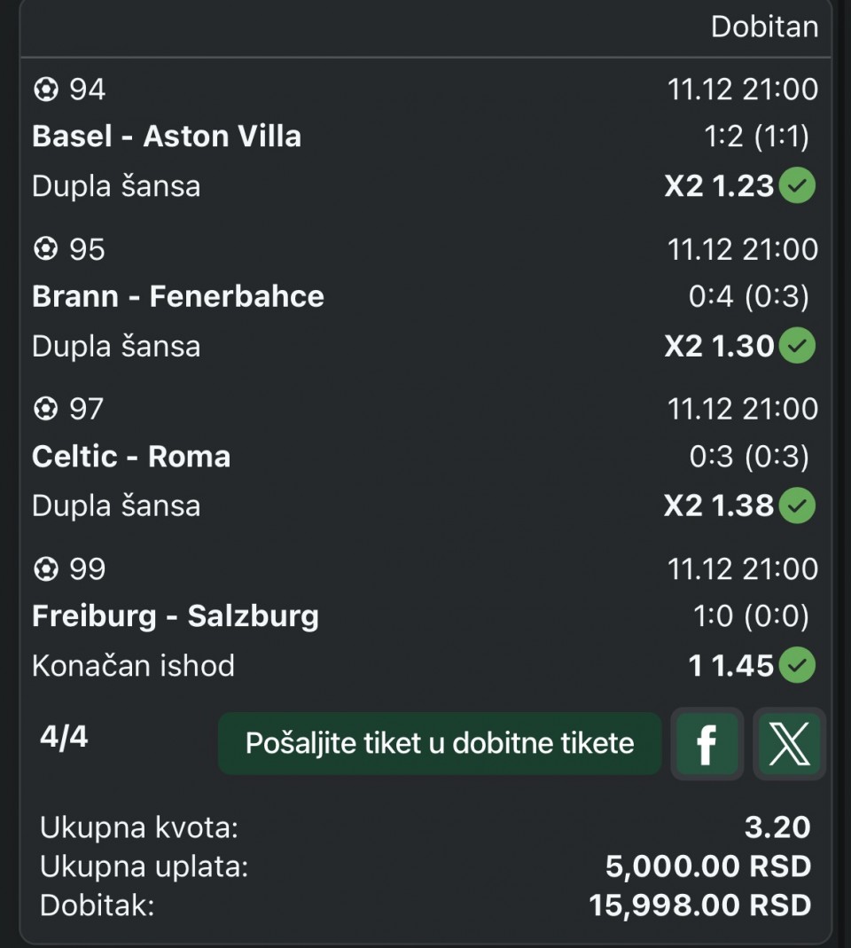 Ovo igram bez mnogo razmisljanja.Znamo svi sta se desavalo izmedju Rasela i Nagetsa na kraju ove sezone i on im je to debelo zamjerio sto je jasno pokazao i u dva prethodna nastupa protiv njih kada je pruzio...R.Westbrook 8,5 ASS Over 2,00 (Mozzart)