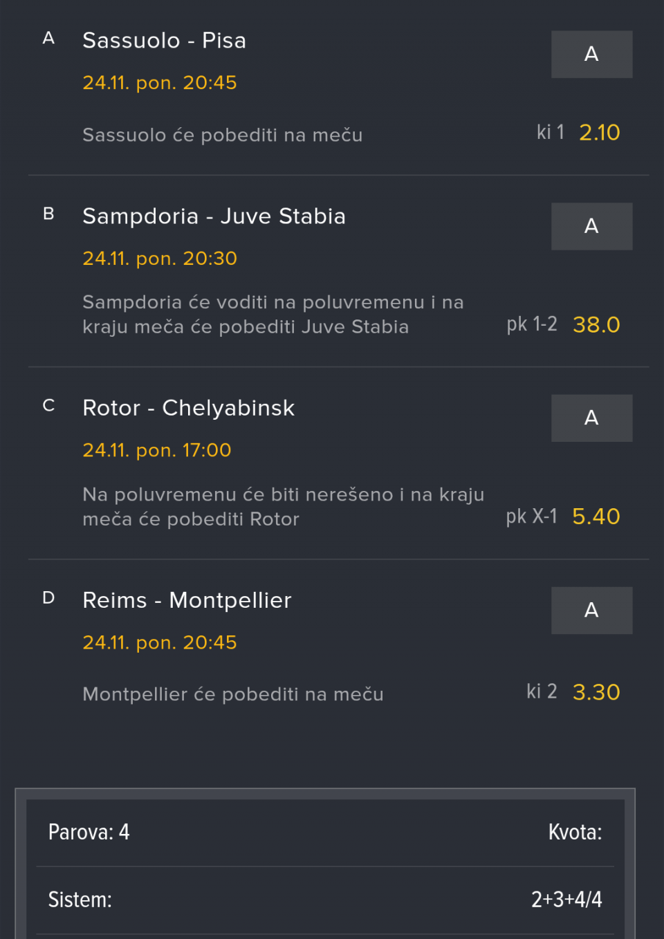 A za danas ostavljam i tripl malo sigurnije varijante za jaci ulog....