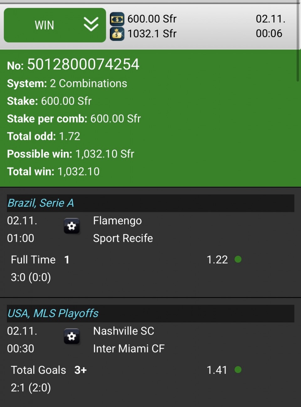 tip: over 2.5 (73 minut trenutni rezultat 2:0)