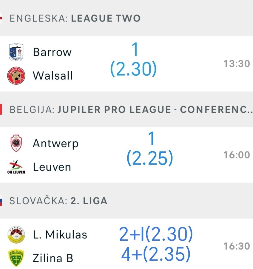 Ludilo od tekme Oss danas, ali ipak pad na kraju.. Za sutra po meni klasican zavrsetak 3 za 3 saradnje u Berlinu, a i mimo toga je Wolfsburg katastrofalan i mislim da ne bi trebalo da bude problema..