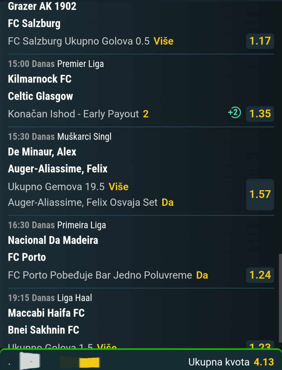 Evo od mene tri meča sa sumnjivim nizom medjusobnih utakmica. Srećno ko prati ja idem sva tri Singla 🍀