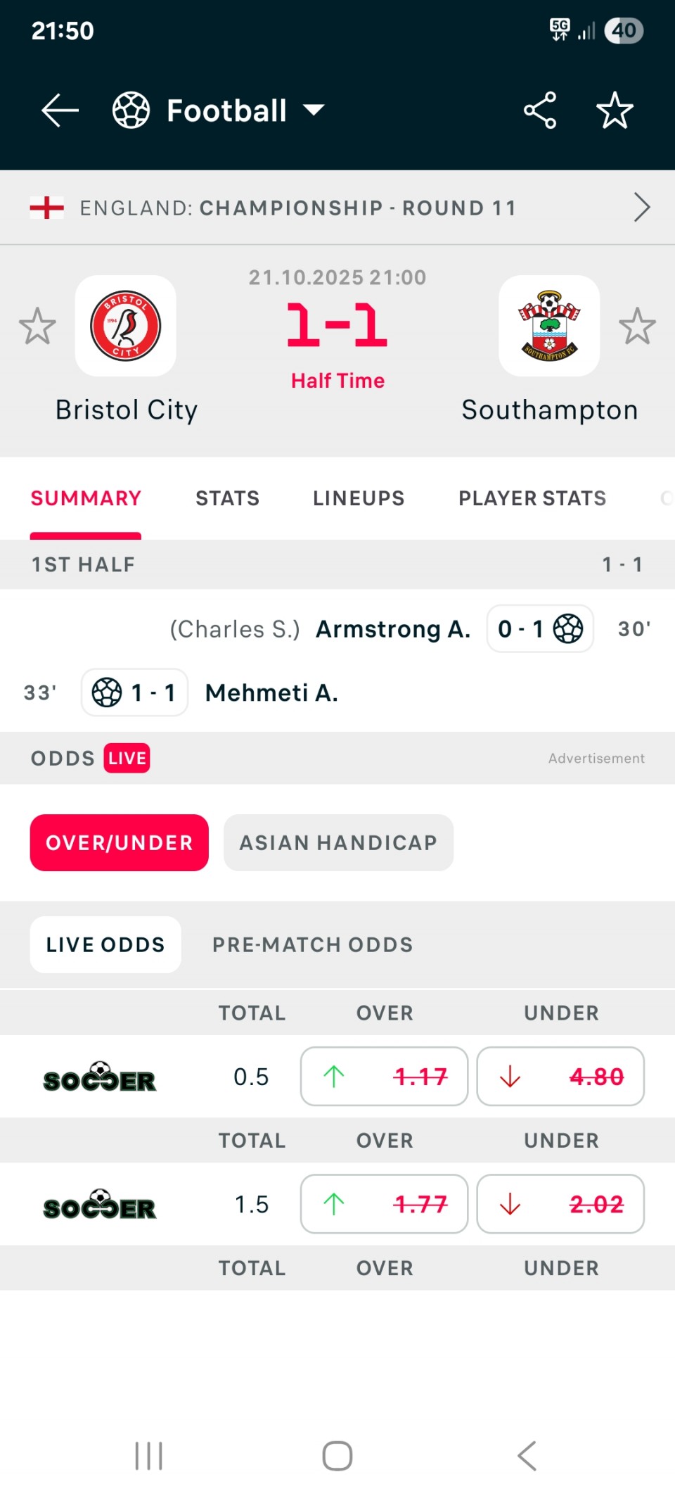 tip: over 1.5 (62 minut trenutni rezultat 1:0)