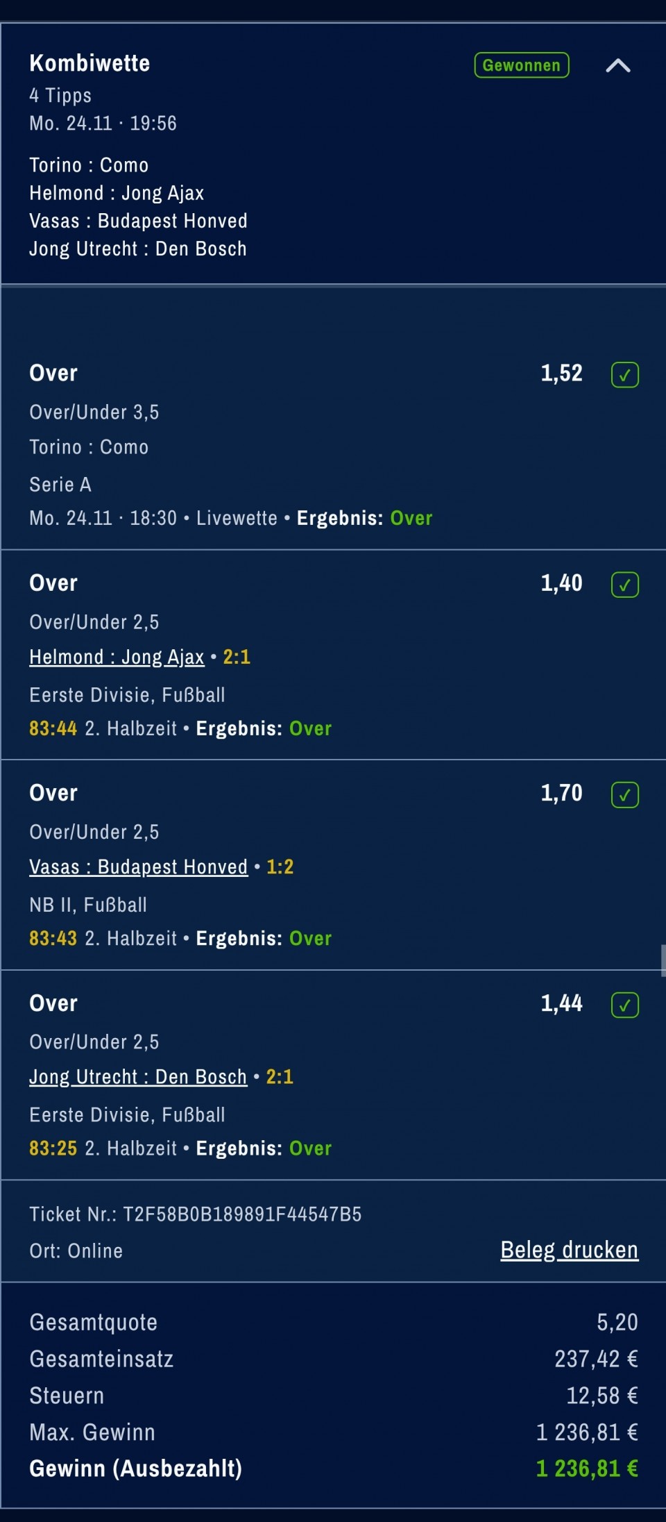 (21.11.) 𝚆𝚒𝚗 2.36 ☞ 1. 𝚔𝚘𝚛𝚊𝚔 ✅ 3...povratili smo sve gubitne uloge, ušli u novi +, i imamo 100% zaradu sa ovim sistemom, još jedan pogodak, pa zakazujemo isplatu