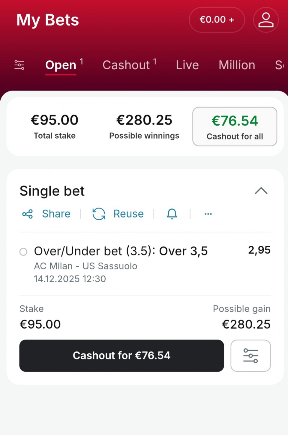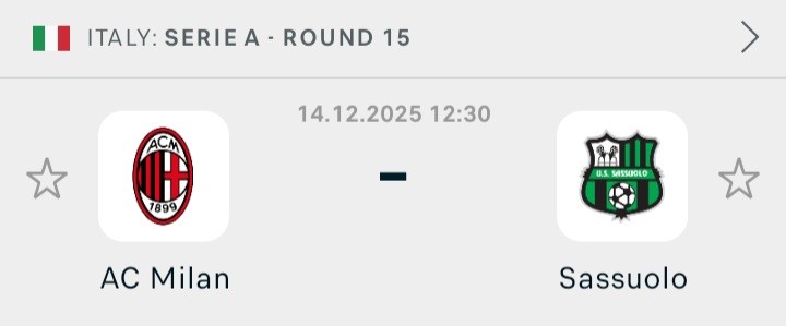 12:30 AC Milan - Sassuolo 2+I&4+ @ 4,75
