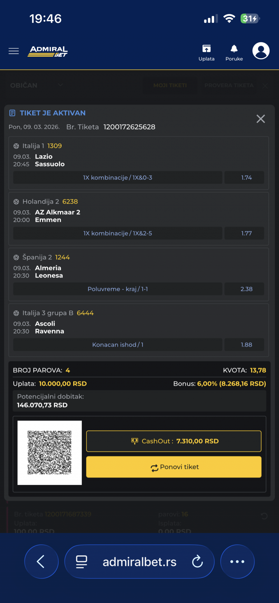Probam jer sam video da Zira nikad nije izgubila na svom terenu od Kapaza, moze da se rizikuje i da se proba mozda 1x, ali idem ovako sigurnije posto nam odgovara i Kapaz ako postigne gol, srecno...Live
