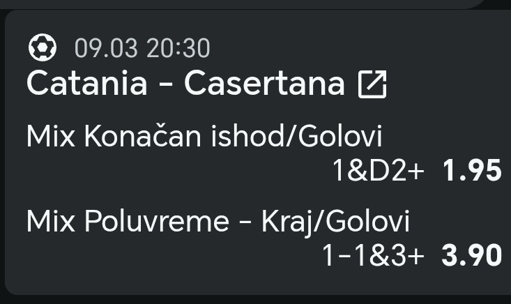 Uz to napomenucu da Catanija ulazi u mec sa najjacim svojim timom,protiv tima koji ima 4 vezana meca bez pobede na gostovanjima