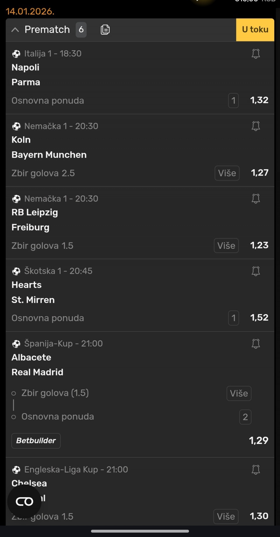 Lepo su Nemci počeli ovu godinu sa golovima pošto je na svim utakmicama od petka postignuto makar 3 gola, pa da ih ispoštujemo i danas. Odlučio sam se za utakmicu za koju smatram da će biti dosta šuteva, pa samim tim i veće šanse...3. nedelja - 2. korak ⚽