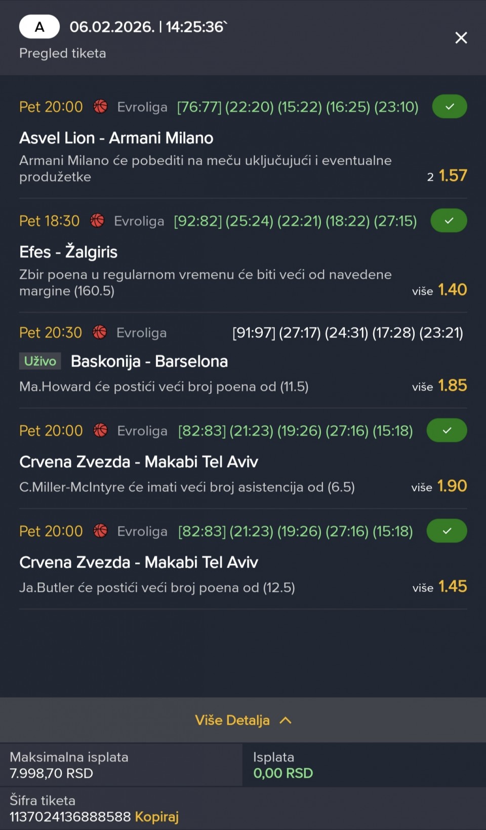U poslednjih 9 dana Arsenal je igrao 4 meca, u poslednja dva nisu primili gol i bas zato jer je kvota prevelika i jer moze da bude gust mec, a moze da bude i 4:1, a i 1:1. Cisto zbog gustog rasporeda i po mom misljenju prevelike kvote igram ovo. Takodje, Arsenal ima svoje februarske momente da kiksne kod kuce protiv autsajdera