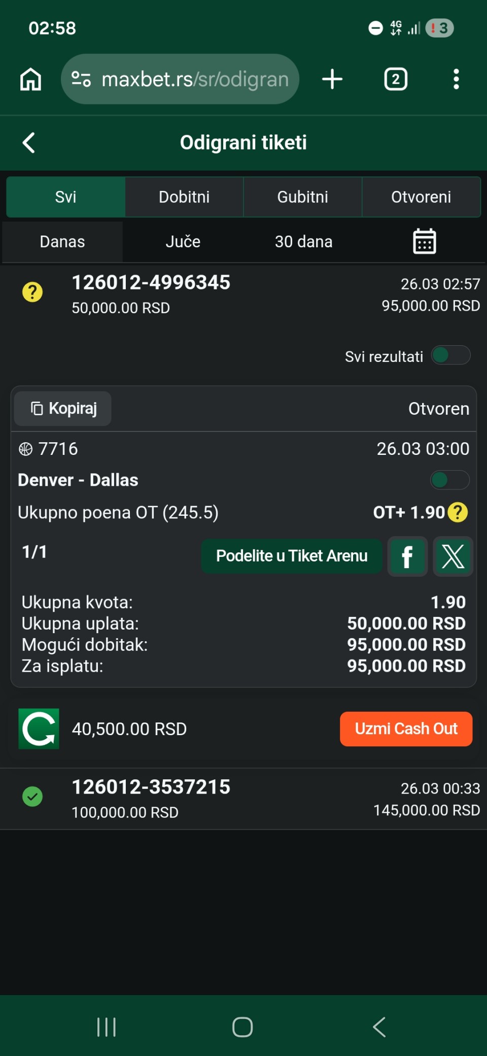 Nazalost smesan i nerealan X na Valuru (a pobeda u produzecima) zeznuli tiket. 😡😡😡