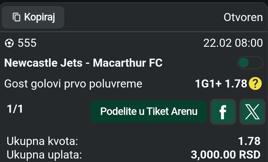 22.02. Kvota: 2.53 → drugi korak