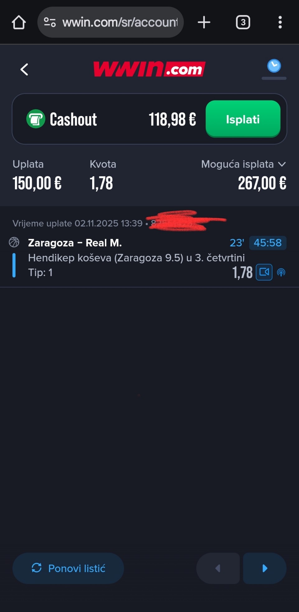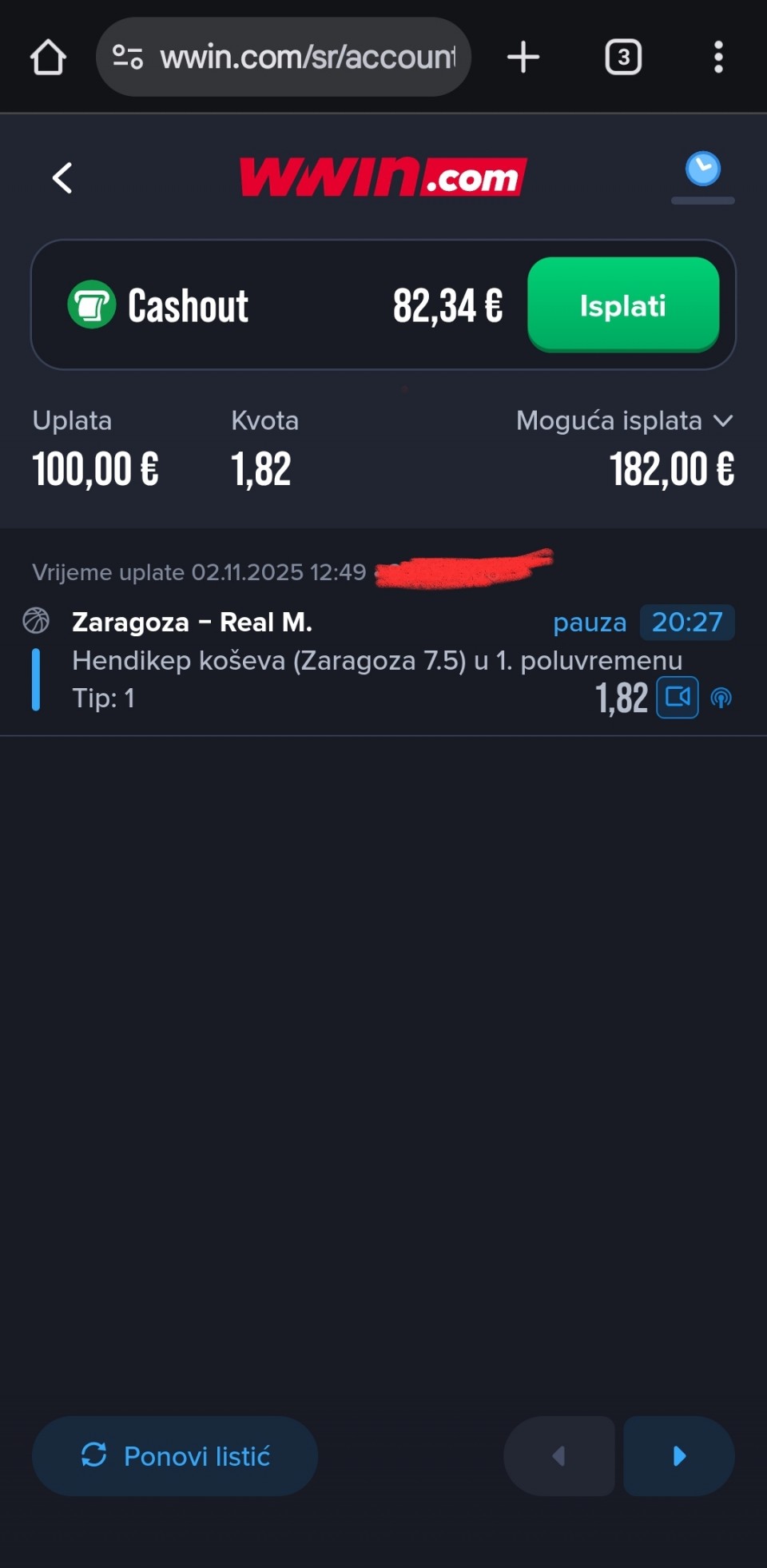 Antofagasta 1 1,75??? Trebalo bi. Lepo krenuo vikend. Za Bahiu sa pisao moje misljenje da se prekida 'deljenje' bodova i da ide 1. Ko ne misli tako neka nastavi niz i igra 2..