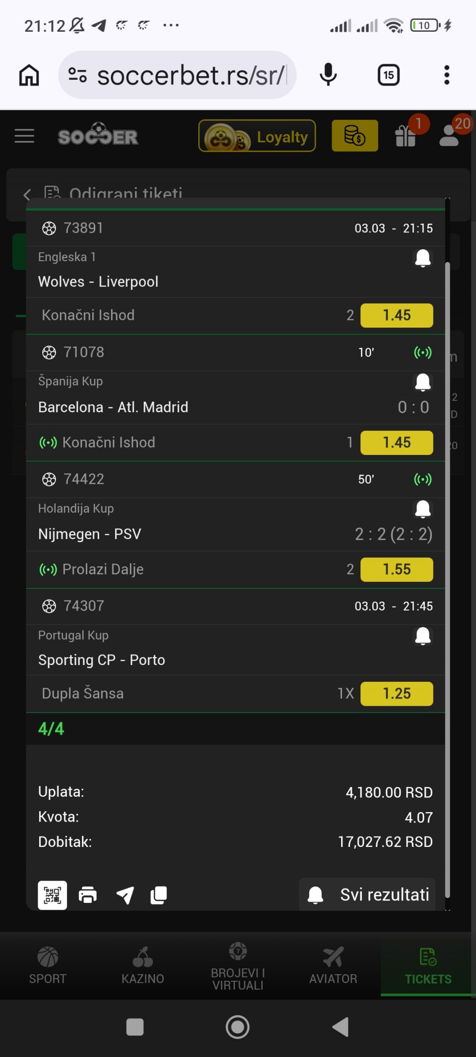 tip: over 3.5 (78 minut trenutni rezultat 3:0)...LIVE