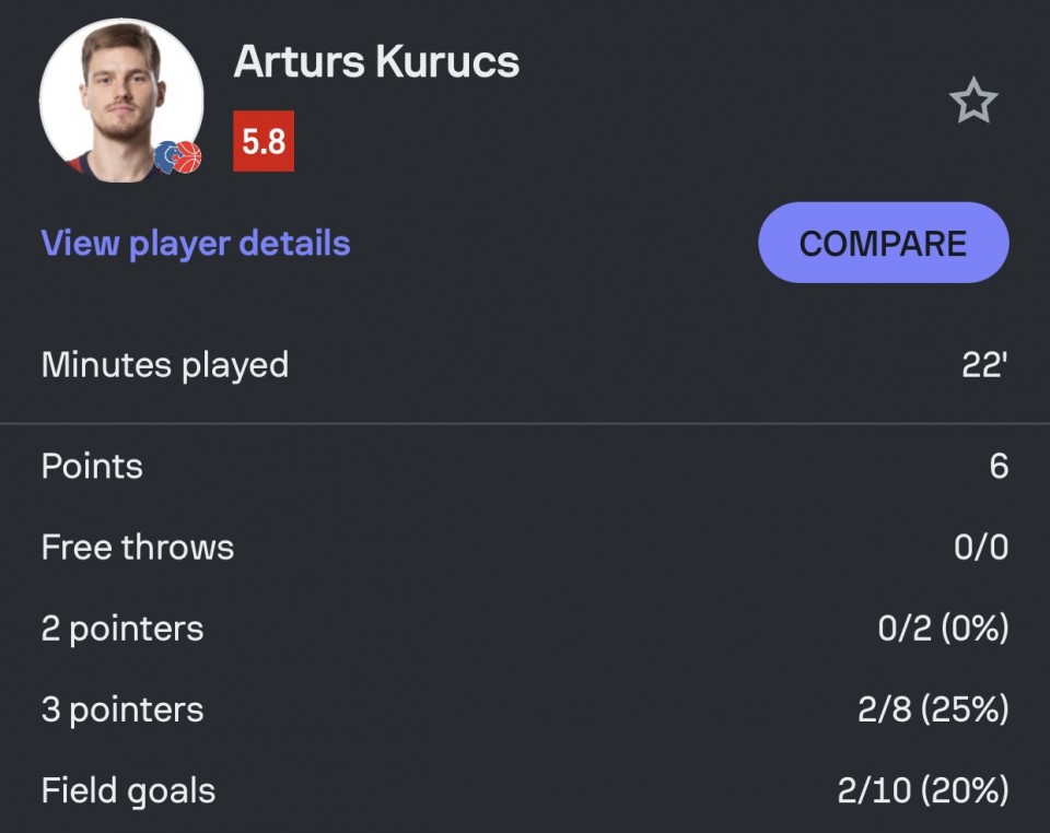 #LOSE A.Kurucs 7.5+ (6pts) ❌❌