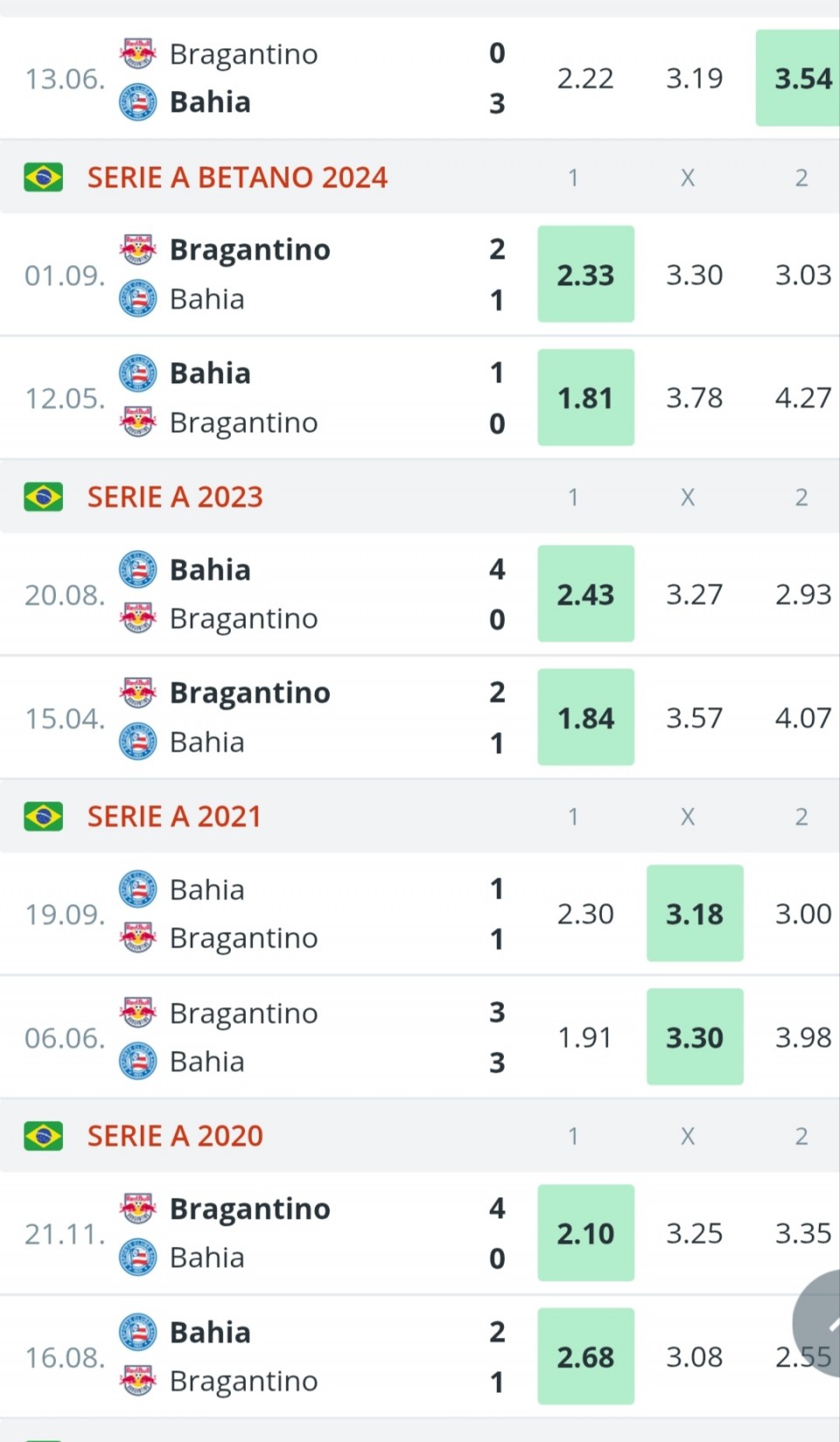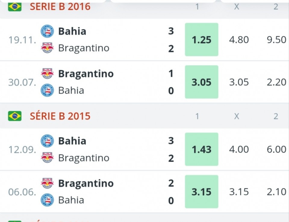 Dobro jutro . Ne znam kako ce se ucitati slika ,ali jedan zanimljiv niz koji dugo traje cak od 2015 godine sa malim prekidom koji se nastavlja 2020 godine. Samo u sezoni 2021 su podelili bodove. A prvi susret ove godine pobedio je gost , tj Bahia...Dobro jutro . Ne znam kako ce se ucitati slika ,ali jedan zanimljiv niz koji dugo traje cak od 2015 godine sa malim prekidom koji se nastavlja 2020 godine. Samo u sezoni 2021 su podelili bodove. A prvi susret ove godine pobedio je gost , tj Bahia. Vidjen je i jedan sumnjiv prelaz u korist Bragantina..Bahia je odlican domacin,pa iz tog razloga tipujem: