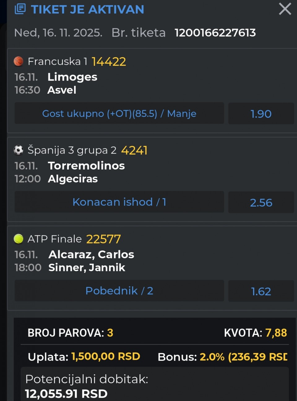 Sa vama da podelim jednu komediju od kladionice #soccer. Ispratio sam samo zadnjih 10 min utakmice. Zadnjih 10 skundi meča Gost izvodi 2 slobodna bacanja pogađaju oba na semaforu stoji 1.3 sekunde do kraja, domaćin izvodi loptu igrač izbacuje...Sa vama da podelim jednu komediju od kladionice #soccer. Ispratio sam samo zadnjih 10 min utakmice. Zadnjih 10 skundi meča Gost izvodi 2 slobodna bacanja pogađaju oba na semaforu stoji 1.3 sekunde do kraja, domaćin izvodi loptu igrač izbacuje loptu sa svoje polovine i pogađa trojku ali sudije gledaju kratko snimak i vide da se poeni ne važe jer je izbačaj lopte bio posle sirene za kraj meča. Poništen koš situacija je jasna 86-93 da je tiket #gubitan na svim sajmovima piše 86-93 soccer je prvo 5-10 min držao tiket na čekanju, zatim su tiket označili gubitnim nekih 20 min je tako stajalo da bi posle toga tiket proglasili #ispalačenim tj vratili su ulog od 9000 din ali tiket je uz to označen kao #kvota1 . Igram tamo od 2018 godine par puta sam imao nelogično scene ali ova je baš zajebalo veka. Sami sebe su oštetili. Show more