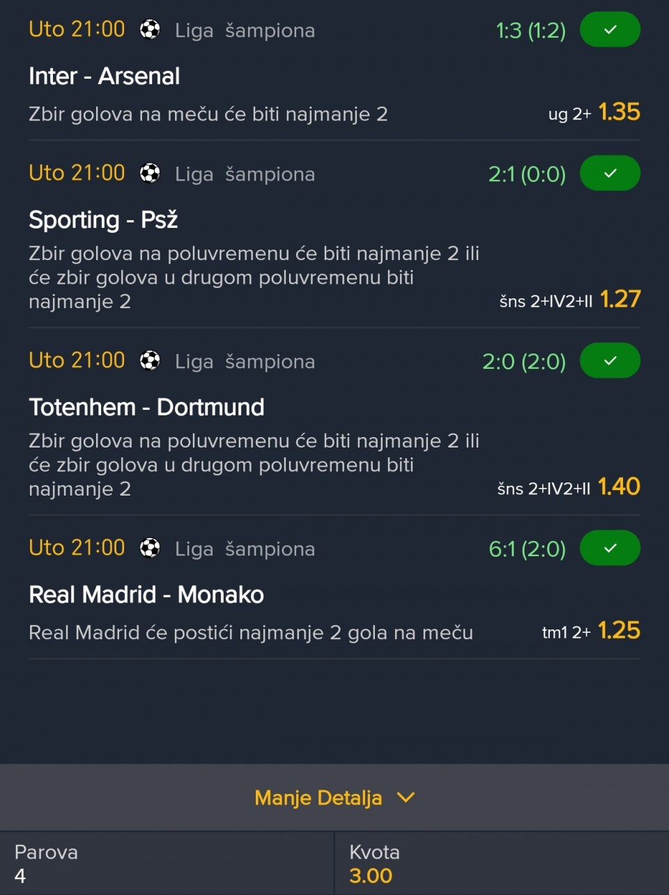 Više od 2,5 gola do kraja kvota 2.15 srećno 😇
