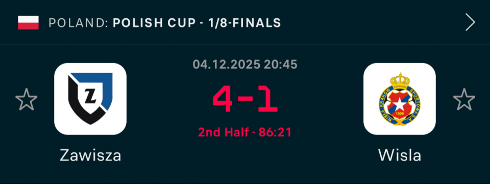 🇵🇱 20:45 Zawisza - Wisla D1+ (1.70) #WIN ✅