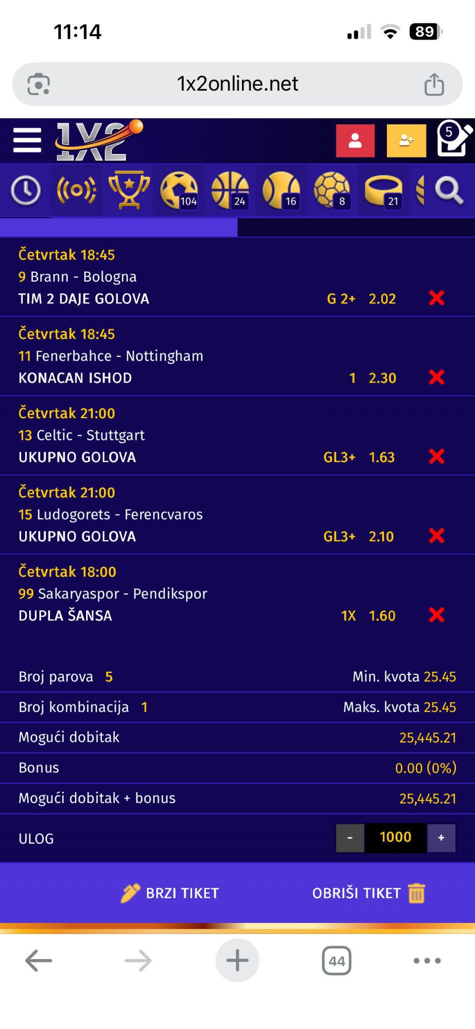 zbroj golova Cenić Ognjen (2.5) OVER KOEF 1,85-NIJE NASTUPIO
