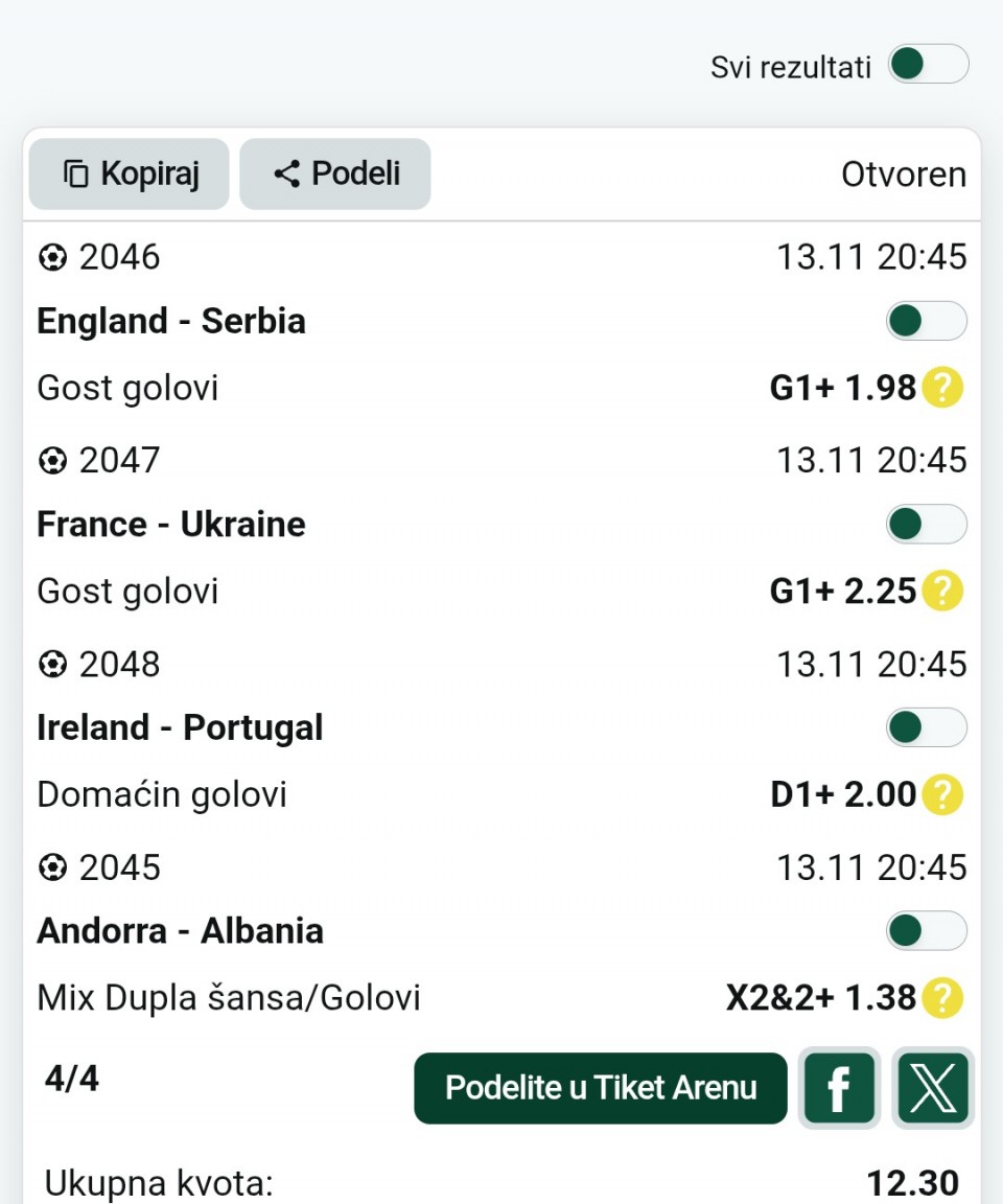 Andora vs Albanija 2 i 2 do 5 kvota 1,70 , tim 2 2+ pp 4,05 , tim 2 3+ pp kvota 13,5. Srecno.