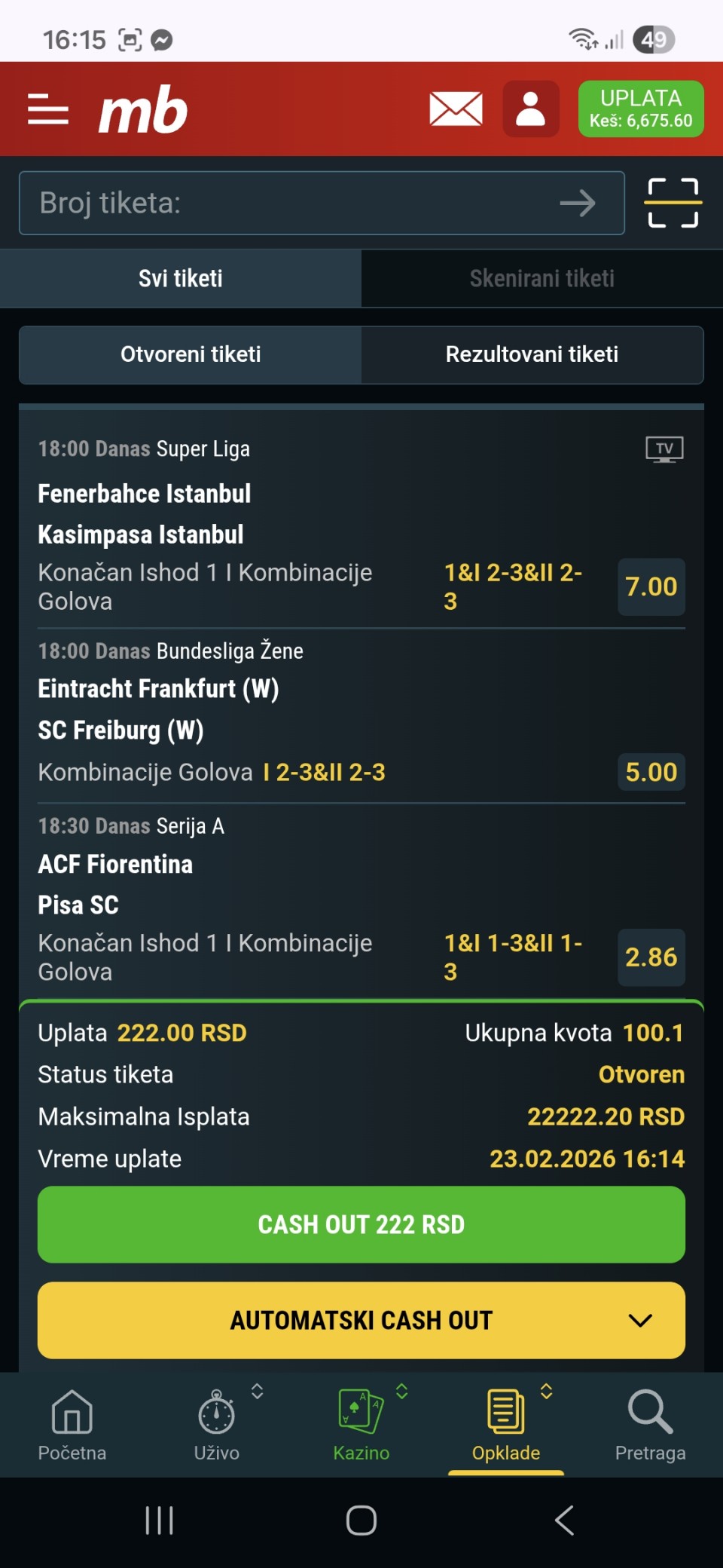 Fenerbache jedini tim bez poraza u ligi nakon 22 kola, Kasimpasi trebaju bodovi, buduci da je izgubio Galata, ovo moram da pokusam