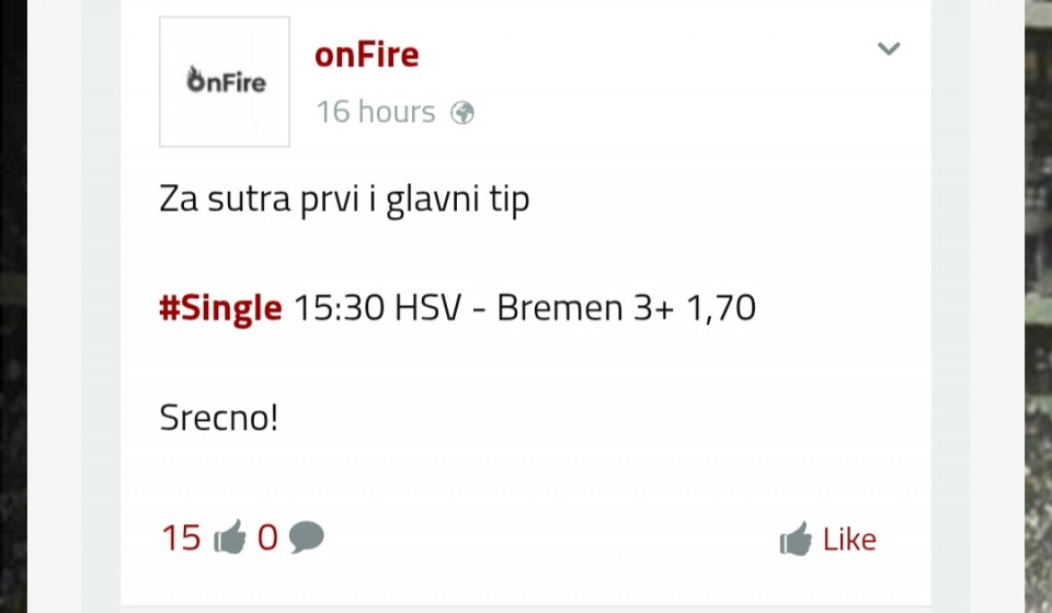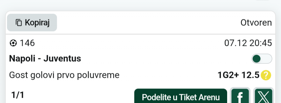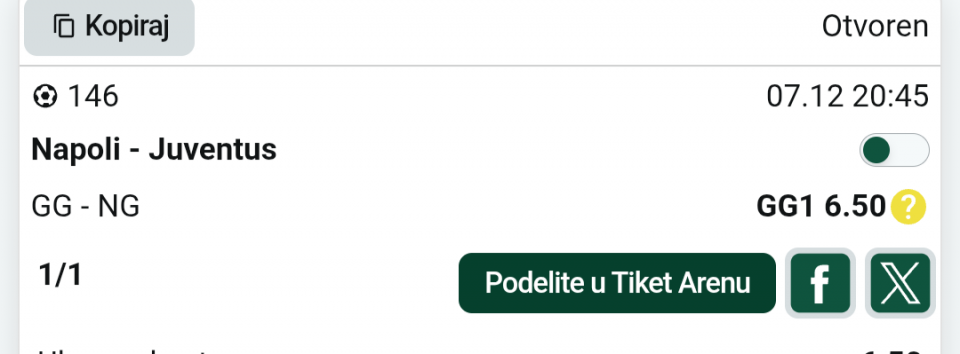 tip: 1X (45 minut trenutni rezultat 0:1)