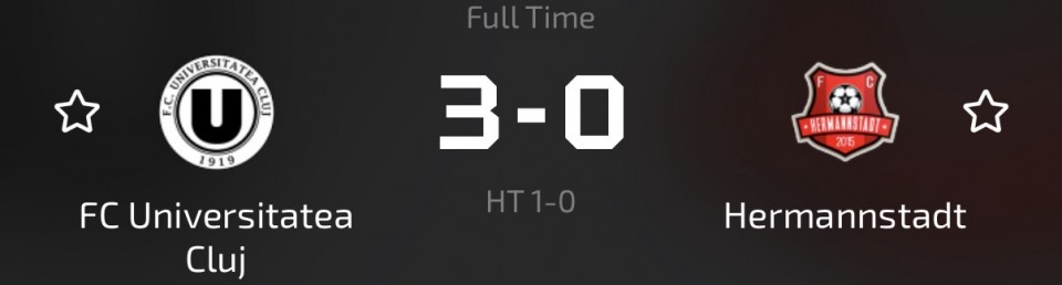 🇷🇴 14:00 U. Cluj - Hermannstadt I1v1 (1.73) #WIN ✅
