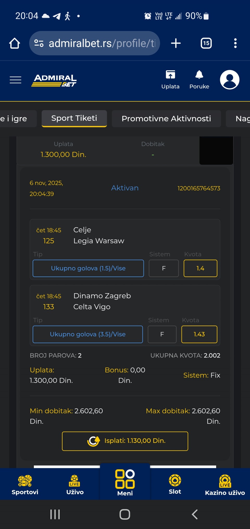 1-1❌ Meni lik umesto prelaza uplati samo 1,ali uplatio sam posle keca po kvoti 2,05 🤣🤣🤣🤣