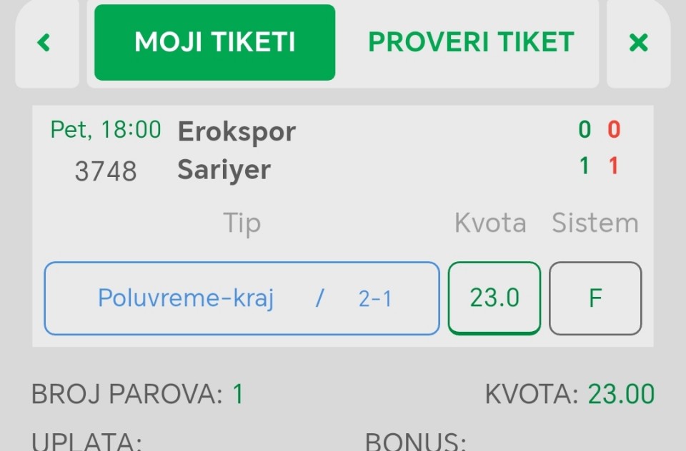 Nisam stigao ranije da okacim, mislim da muljaju nesto, jos crveni karton, bice dobra kvota na poluvremenu na 1 ako ostane 0:1