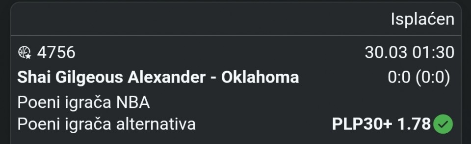 Jeste sa igraju protiv Oklahome ali bas mala granica za njega,idemo plus pa gde puklo da puklo😤