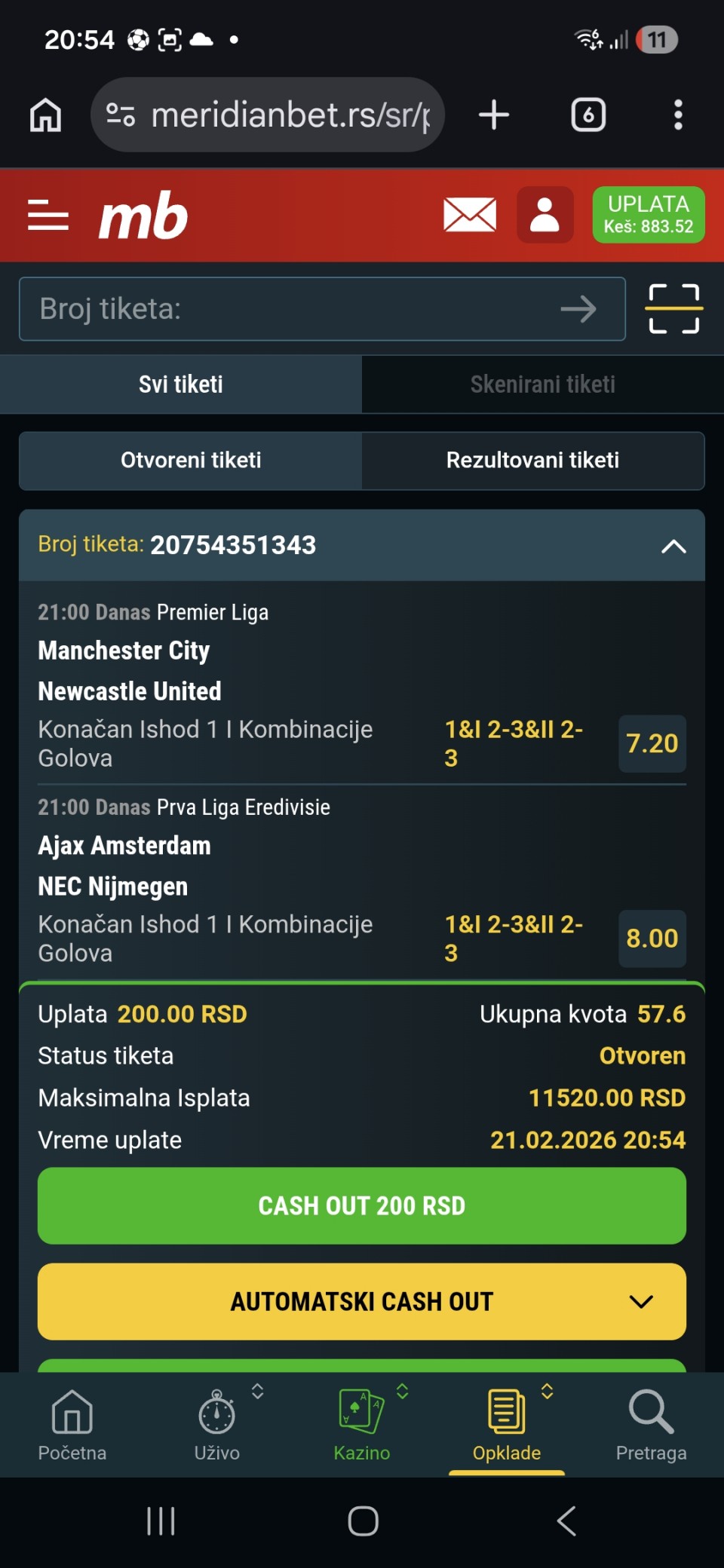 21.02. Kvota: 2.34 → prvi korak