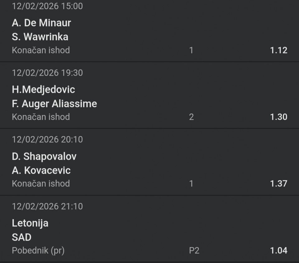 Slucajno naisao na ovaj par. Koliko vidim rumunj 3 puta zaredom igra iste meceve..Pobjeda 2:1 pa poraz 2:0. Volim ovakve "teorije zavjere" i vjerujem da danas gubi od Biletica. Ako ne 2:0, cista pobjeda se isto...🎾G.A.Boitan - I.Biletić Ki 2(1.85)